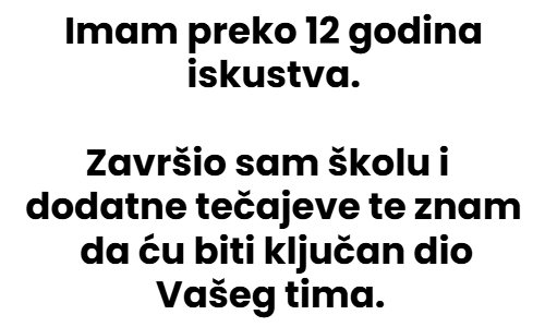 Provjereni radnici koji zadovoljavaju sve profesionalne standarde.
